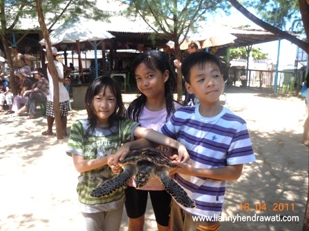Pulau Penyu* Awalnya takut, akhirnya si bungsu mau juga pegang penyunya hehe *