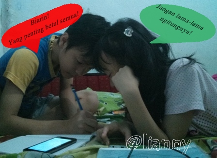 Nah kedua kakak Alicia yang duduk di kelas 7 dan 8 jadi ingin mencoba juga. Sayang sekali untuk yang tingkat SMP tidak ada, jadilah mereka kubuatkan profil kelas 6 SD agar mereka bisa ikut mencoba juga, meski yang dijawab soal-soal tingkat SD haha 😀 Mereka senang sekali.
