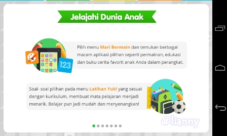 Fitur Aplikasi terpadu ini akan menghadirkan berbagai macam aplikasi pilihan seperti permainan, edukasi dan buku cerita anak favorit. Aplikasi terinstal akan menunjukkan apa yang sudah kita unduh di aplikasi ini.
