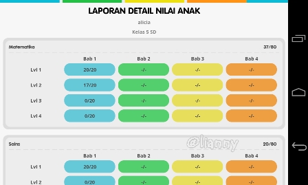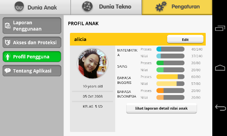 - Orang tua bisa memantau aplikasi apa saja yang sudah diunduh anak ataupun memantau perkembangan anak dalam mengerjakan soal-soal latihan.