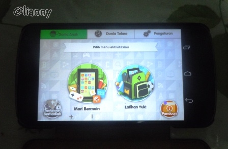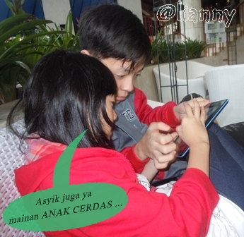 Alicia yang duduk di kelas 5 SD ini ternyata lebih suka bagian edukasi. Pertama kali yang dicobanya adalah matematika, dia senang karena tidak ada target waktu sehingga bisa mengerjakannya tanpa terburu-buru, apalagi selesai mengerjakan masih bisa diperiksa dan dibetulkan jika ada yang salah. Selesai, dan hanya salah satu, wow senangnya bukan main. Akhirnya dia bolak-balik mencoba mata pelajaran kelas 5 yang ada di situ, Matematika, Sains, Bahasa Inggris dan Bahasa Indonesia.