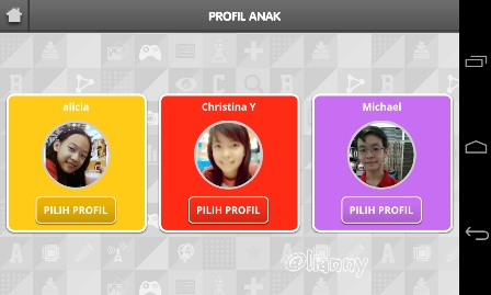 Pertama kali aku mencoba aplikasi ini di smarthponeku sendiri dan kuperlihatkan pada Alicia, anakku yang paling kecil. Eh ternyata dia suka dan asyik banget mainnya. Sebentar-sebentar hp ku di pinjamnya untuk mainan.