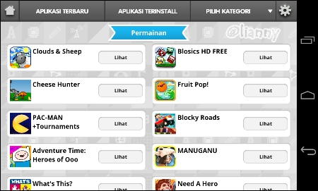 Terdapat aplikasi terpadu, aplikasi terinstal dan pilih kategori.