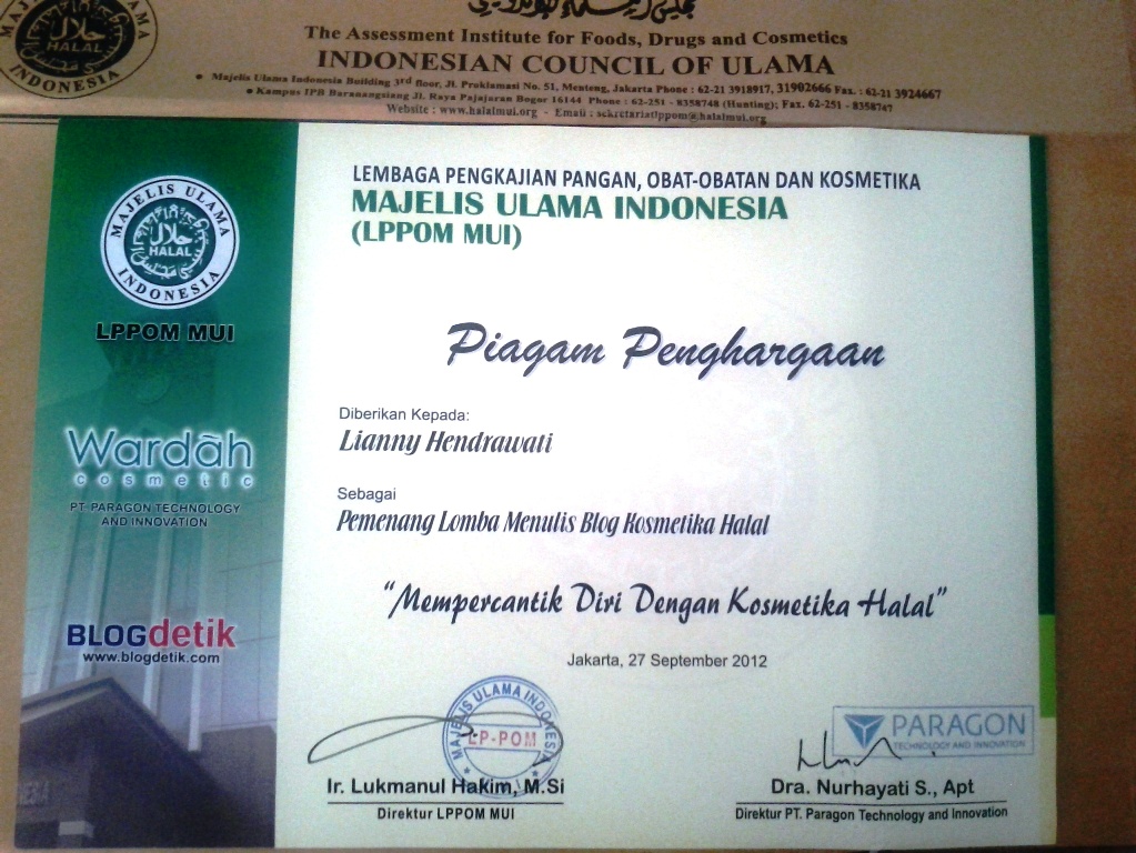 - Pemenang Hiburan Lomba Blog Blogdetik Kosmetik Halal Wardah ( Agustus 2012 )