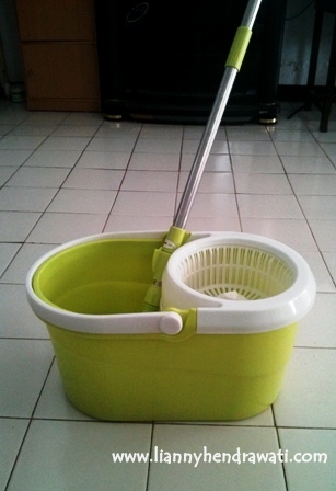 Beberapa bulan lalu, liat di tv ada tayangan tentang super mop, alat pel serbaguna yang terdiri dari tongkat pel dan ember pel. Kita nggak perlu mencuci, memeras kain pel, dan mengeringkannya karena kain pel bisa dicuci dan dikeringkan menggunakan alat pengering yang terdapat di ember pelnya. Bisa ditebak, langsung deh naksir dengan alat pel itu. Sepertinya kok jadi gampang sekali mengepel lantainya. Nah, bulan lalu sewaktu belanja di supermarket, ternyata ada produk seperti itu, sedang ada diskon pula. Pengin beli sebetulnya, tapi masih mikir-mikir dulu, sampai pulang ya nggak jadi beli.