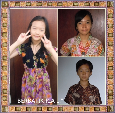 Kain batik selain bisa disajikan menjadi beragam baju batik yang indah, bisa juga dibuat menjadi berbagai macam kerajinan. Sebagai contoh sederhana saja, di sekolah anakku saat pelajaran ketrampilan (KTK) diajari juga membuat berbagai macam ketrampilan yang menggunakan kain batik dan kertas bercorak batik sebagai hiasan, antara lain: