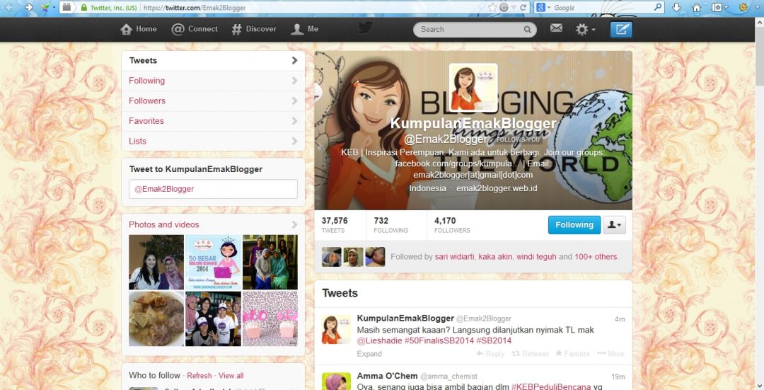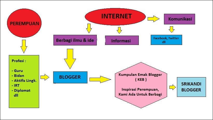 Berkat internet pula, aku menemukan sebuah komunitas khusus untuk perempuan yaitu Kumpulan Emak Blogger (KEB) dengan motto yang diusungnya : Inspirasi Perempuan, Kami Ada Untuk Berbagi. Komunitas ini terdiri dari blogger perempuan dengan berbagai profesi yang tulus berbagi dan saling menebar energi positif. Blogger perempuan yang berkarya dan menginspirasi orang lain lewat tulisan-tulisannya di blog.
