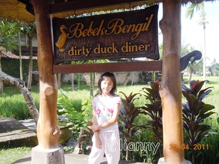 Nah kalau yang bebek bengil itu ada cerita tersendiri,hal yang menggelikan sebetulnya eh tapi tepatnya sih “memalukan” buatku. Nah kalau nggak salah satu porsi bebek itu di daftar menu tertulis 70. Yah entah kenapa kok aku mikirnya itu 70 dolar bukan 70 ribu. Suamiku pesan 4 porsi saat itu. Aku ngotot supaya pesan 2 porsi saja, lha uang di dompet nggak cukup kalau pesan 4 porsi. Kan ada “card” kata suami, bener juga sih tapi ya sayang kan kalau mengeluarkan uang segitu banyak untuk makan bebek bengil ini. Jadinya sambil menunggu pesanan datang, mukaku sudah cemberut saja. Nah, suamiku merasa penasaran. Kenapa sih, pikirnya? Akhirnya aku ngomong, mahal amat itu bebek, masak seporsi $70. Hahhhh? Suamiku bengong dan sedetik kemudian ketawa ngakak nggak berhenti-berhenti. Itu harganya 70 ribu bukan 70 dolar, katanya. Yaelah, aku baru sadar saat itu, dan kebayang kan malunya itu lho, muka sudah merah seperti kepiting rebus. Untung yang tahu cuma suami sama anak-anakku, jadinya sampai sekarang kalau ngomongin bebek bengil ini pasti deh aku diledekin huhuhu… O ya ternyata porsinya itu lumayan besar, seporsi cukup buat 2 orang ternyata. Jadi mestinya pesan 3 porsi saja ditambah nasi putih sudah cukup sih buat kami berlima, anak-anak masih kecil jadi makannya juga nggak banyak-banyak amat, lha yang dewasa mestinya juga nggak boleh makan banyak-banyak biar nggak kolesterol hehe.