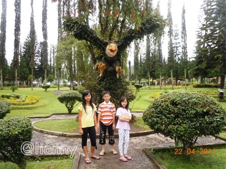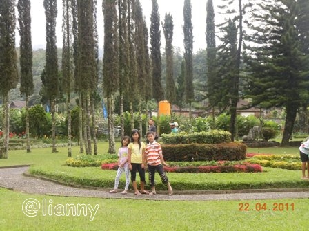 Sempat berfoto-foto sebentar di taman yang ada di dekat sana. Tamannya indah sekali dan anak-anakku sebenarnya pengen lebih lama di sana, sayang gerimis sudah mulai turun sehingga kami cepat-cepat pulang kembali ke penginapan.