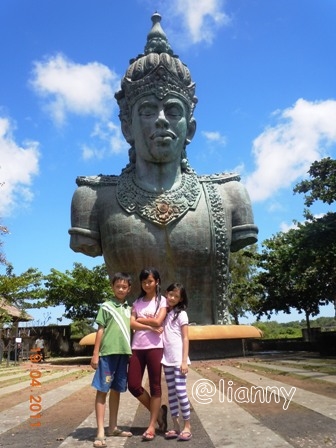 Di GWK banyak bagian tubuh patung yang belum selesai dan disana juga anak-anakku mencoba manicure gratis, mumpung liburan kukunya dihias-hias. Kalau sudah mau masuk sekolah, kuku kan nggak boleh dihias, kata anakku.