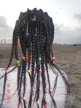 * Putriku nyoba kepang rambut di Pantai Kuta *