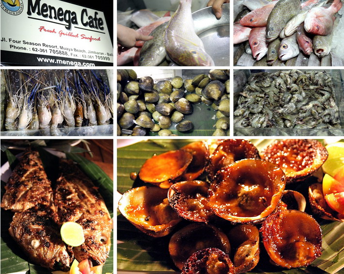 Kami mencoba juga makan seafood di Jimbaran. Rasa makanannya enak sih, cuma sempet kepikir juga dengan peristiwa bom Bali di tempat itu hahaha… Kami memesan kerang, udang besar dan ikan bakar saja. Nggak sempet foto makanannya, karena keburu lapar. Begitu masakan datang, langsung sudah tangan-tangan ini beraksi hehehe.. Tapi penampakan ikan bakar dan kerangnya sih mirip seperti gambar di bawah ini..