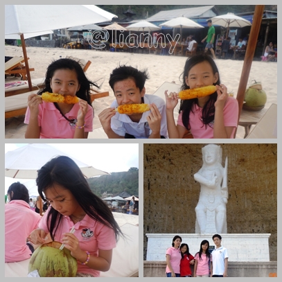 * Sehabis main pasir, santai sejenak makan jagung bakar dan degan *