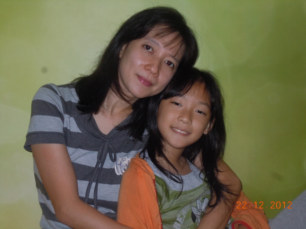 Fotoku bersama anakku yang paling kecil ini diambil tanggal 22 Des 2012, sekitar 8 bulan sejak  aku  mengenal bunda Yati. Saat itu kami sedang liburan sekeluarga dan menginap di sebuah hotel. Kok wallpapernya bagus, jadi deh sebelum pulang foto-foto dulu disitu. Serasa foto di studio he he .. ini hasil jepretan anakku yang pertama 🙂